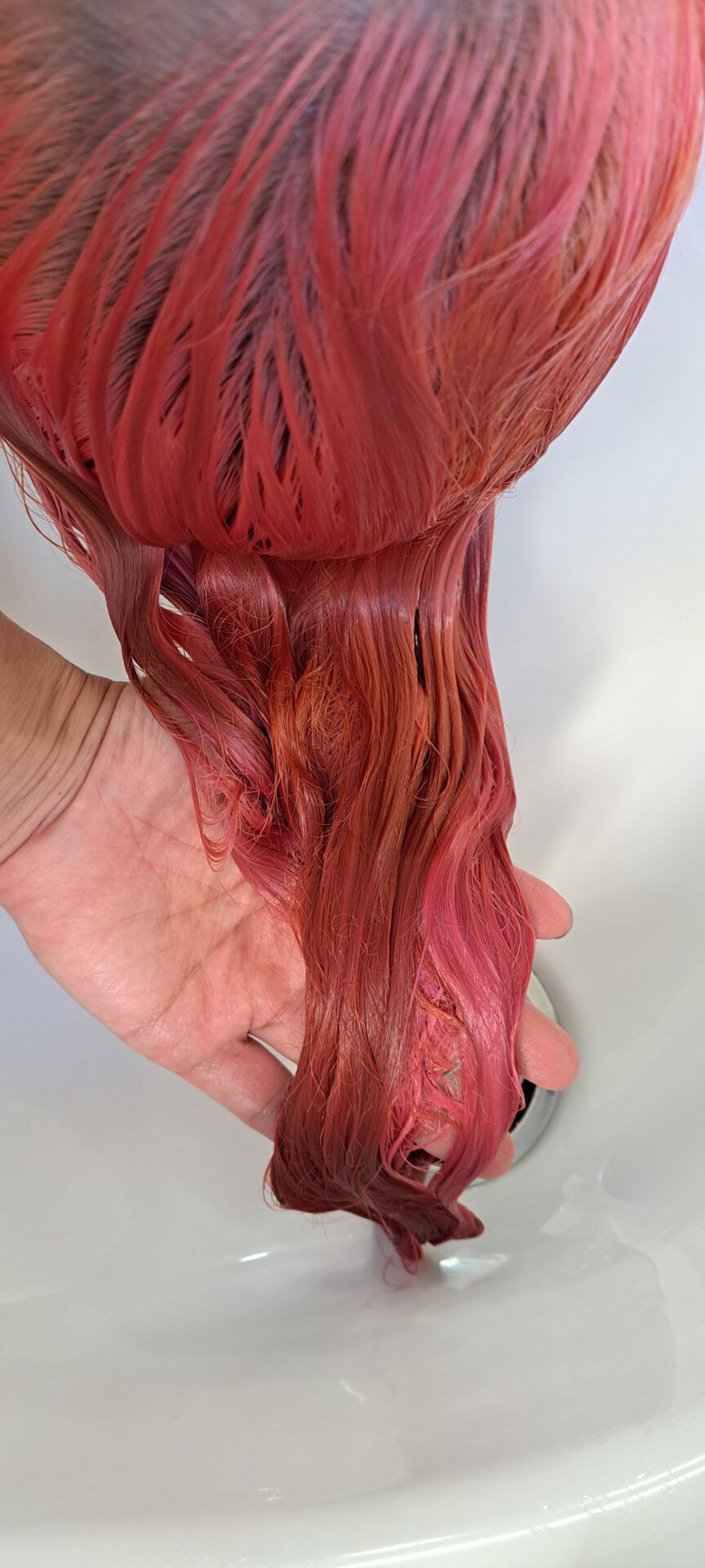 ↓は、サクラで使ってるカラーシャンプーなのですが、一回のカラーシャンプーでこの色です