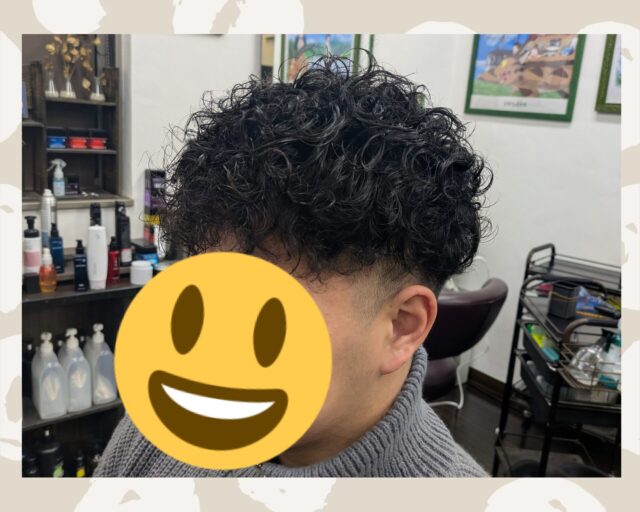 地毛がめっちゃストレートなので、いつかハードパーマをしたいと思っていたそうなので、遠慮なく、くるくるにさせて頂きました♪