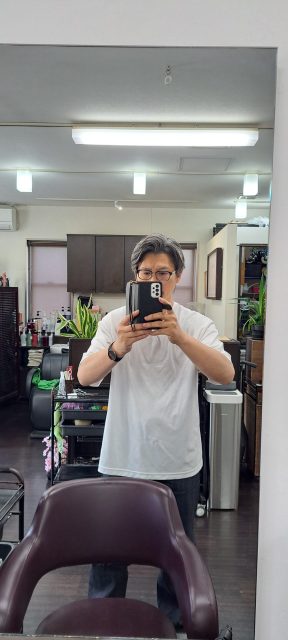 そして、白いTシャツは、営業終わりにはすでにカラー剤の汚れがついてました、、、。