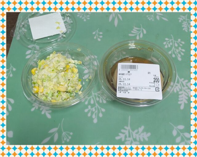 コールスローはかたより、煮卵は袋の中でひっくり返ってたのに1滴も汁漏れなし!!