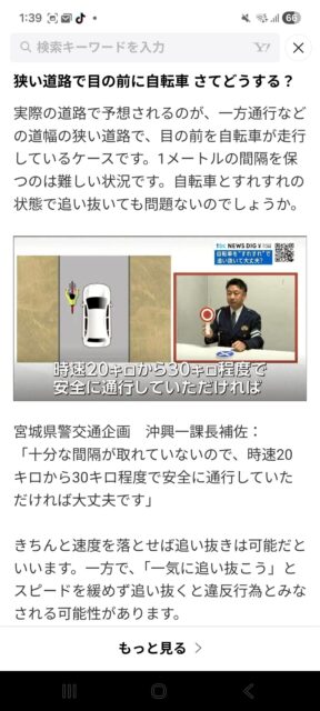 狭い道路で目の前に自転車 さてどうする?