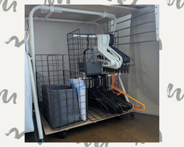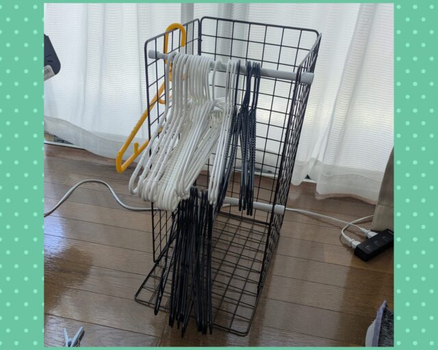 ずっと、ハンガーの収納に困ってて、とりあえずでカゴにまとめてありました。