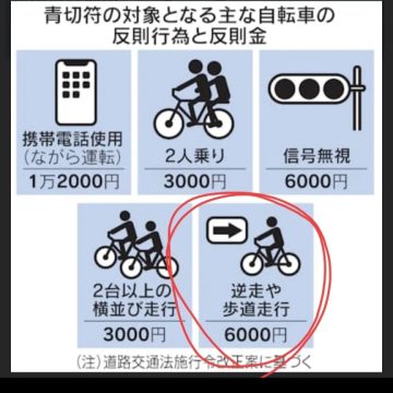 こんばんは サクラのかくだです 自転車の違反で、青キップきられる事になるんですね 来年の4月から。 …
